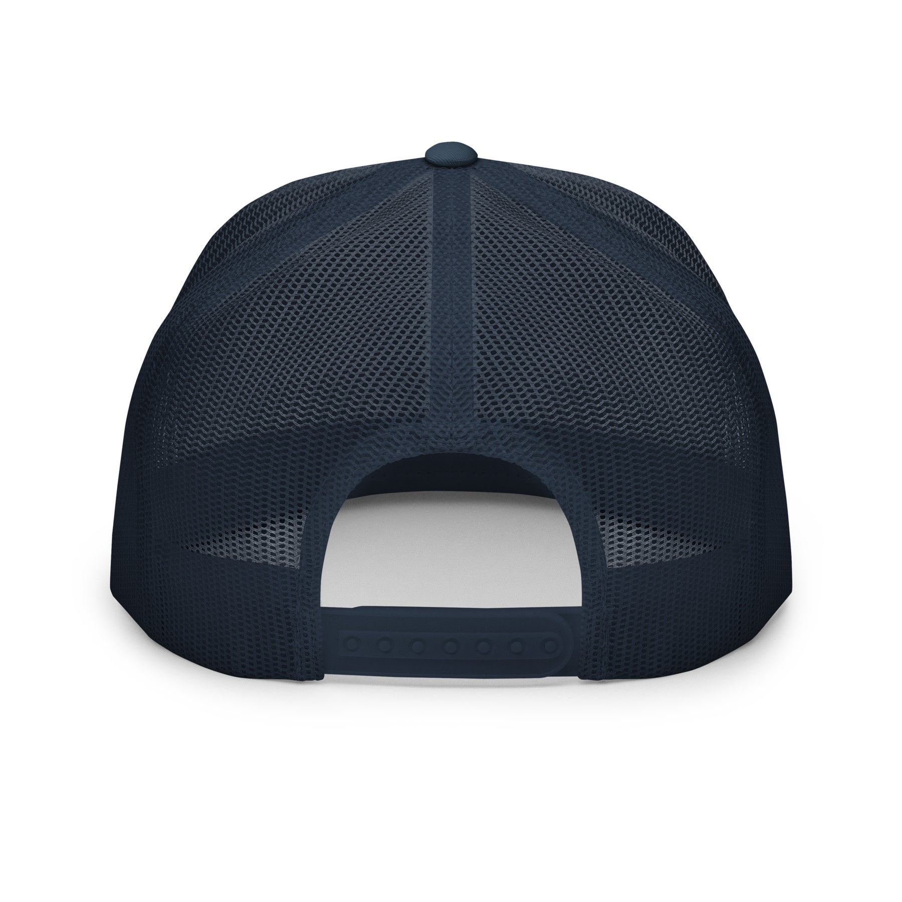 Fluid Identity adjustable trucker hat in navy and white with The Bear TV Series logo for fans