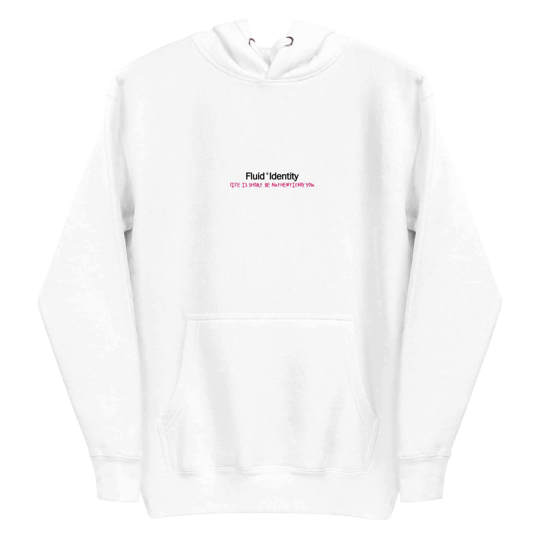 Fluid Identity White Hoodie featuring Urban Style Streetwear Fashion and front pocket for casual comfort