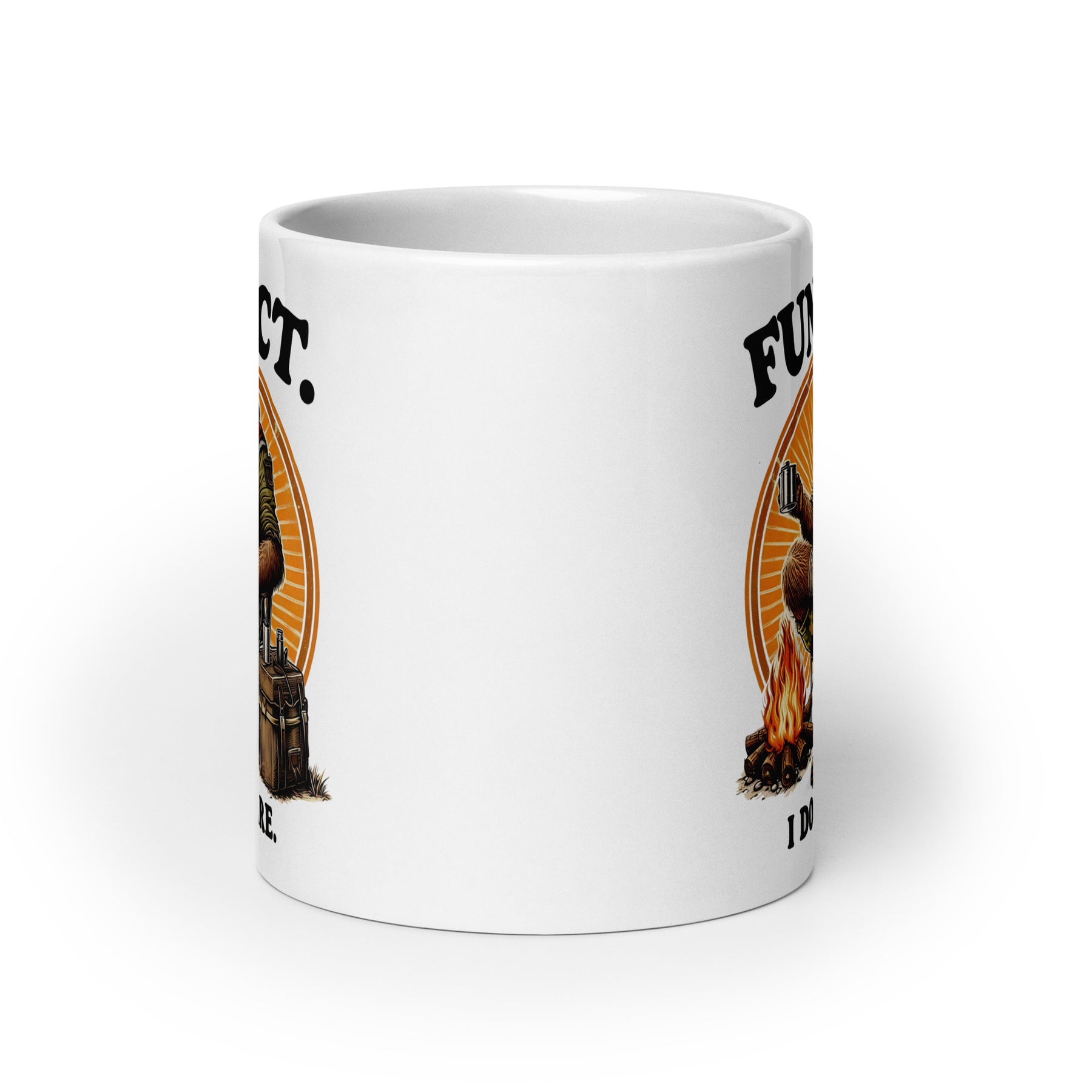 Funny Satire Coffee Mug with humorous camping design and prints for outdoor enthusiasts